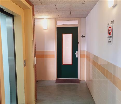 De woning is gelegen op de 2e etage van het kleinschalige seniorencomplex aan de Puttershoekstraat. Het complex is een kleine portiekflat met een lift. De gelijkvloerse woning is gelegen op de tweede etage en direct naast de lift. Vanuit de centrale gang zijn alle vertrekken bereikbaar. De woning is grotendeels drempelvrij alleen de badkamer heeft een hoge opstap van minimaal 10 cm. De woning heeft GEEN buitenruimte en alleen een frans balkon. De woning is gelegen op de hoek waardoor en mooi zicht is op de veel groen, bomen en de metrobaan. Deze metro kan enige geluid overlast geven, wat hoorbaar is in de slaapkamers. Het frans balkon zijn mooie naar binnen opslaande deuren vanuit de hoek van de woonkamer. De woning heeft houten (krakende) vloeren en wanden en geen berging.