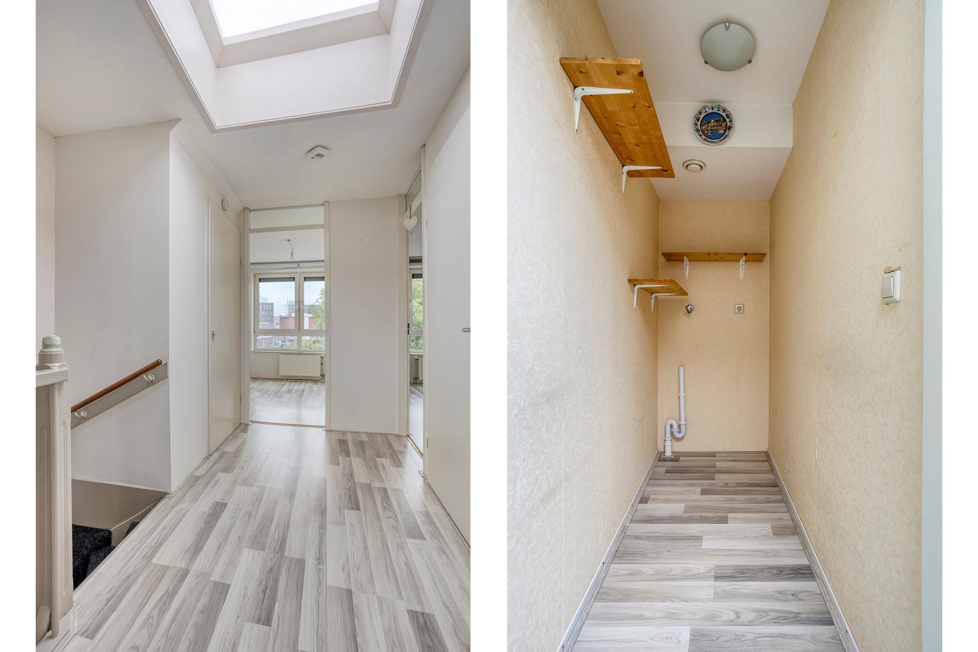 Overloop met lichtkoepel, cv-kast met mechanische ventilatie unit en toegang tot het washok, tevens te gebruiken als berging.