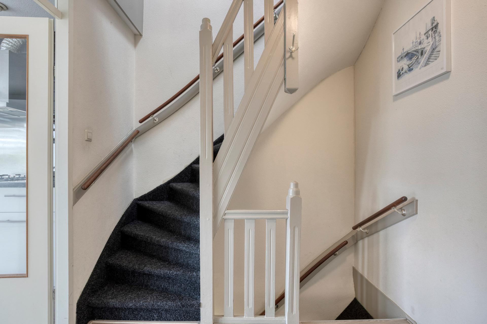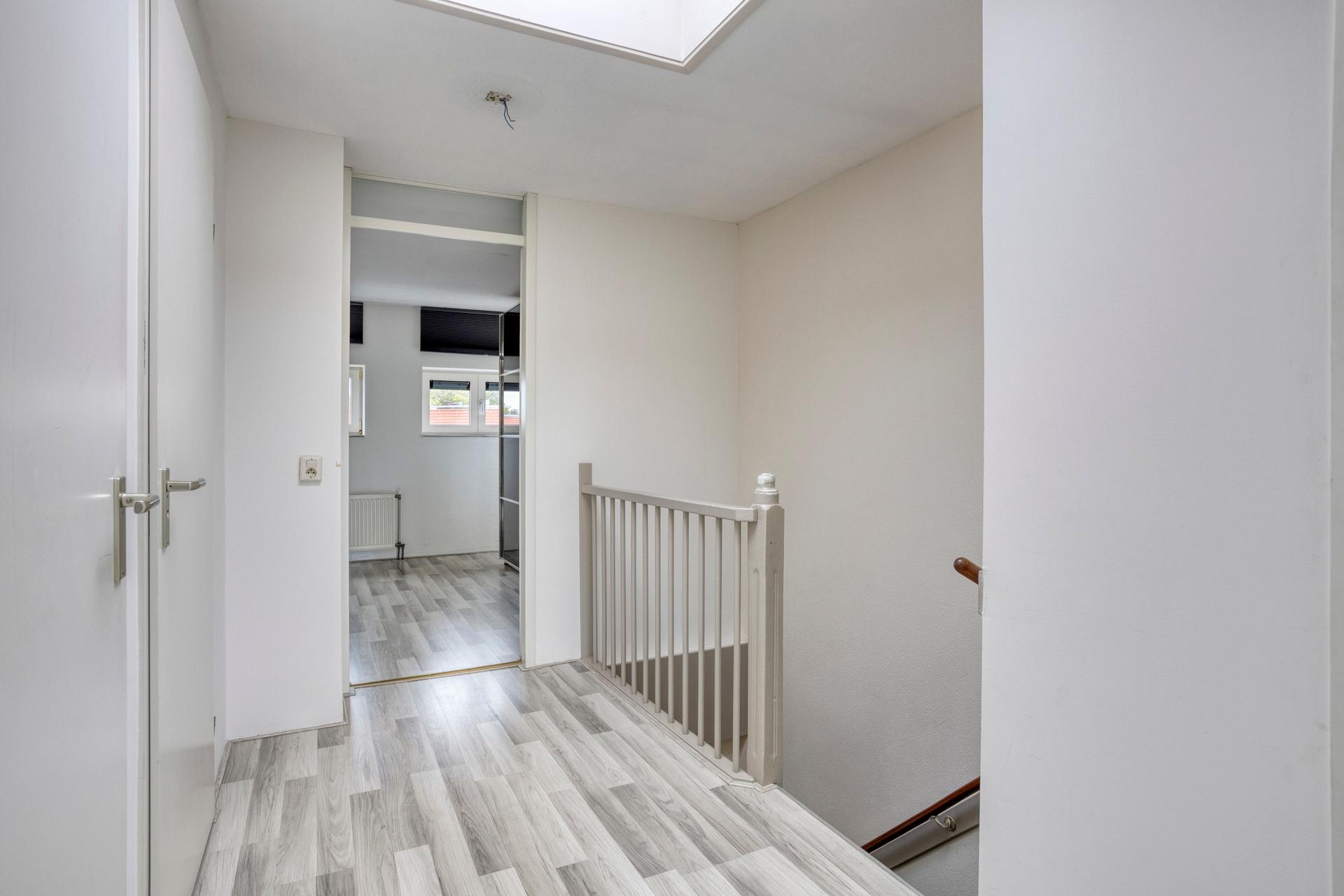 Overloop, gang, toilet, vaste trap en toegang tot de woonkamer en het balkon gelegen op het zuid-westen.