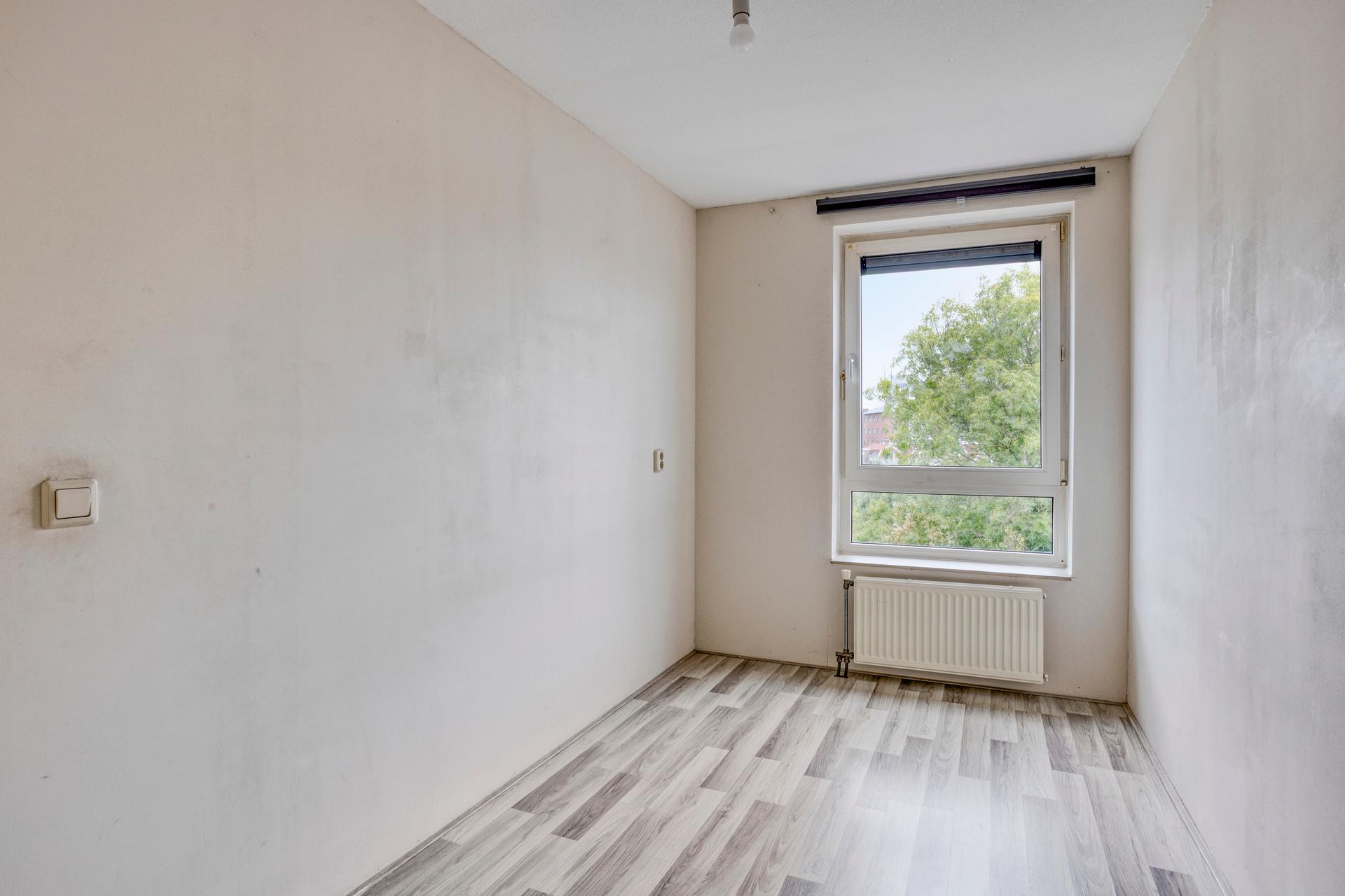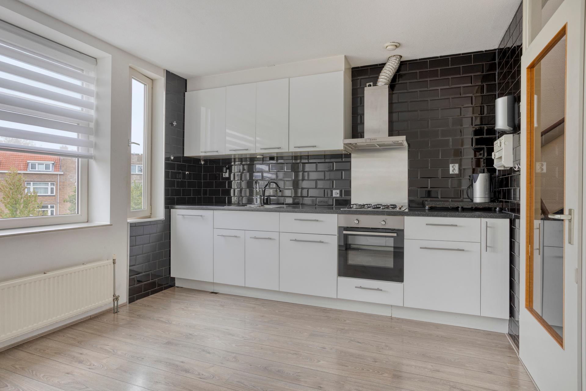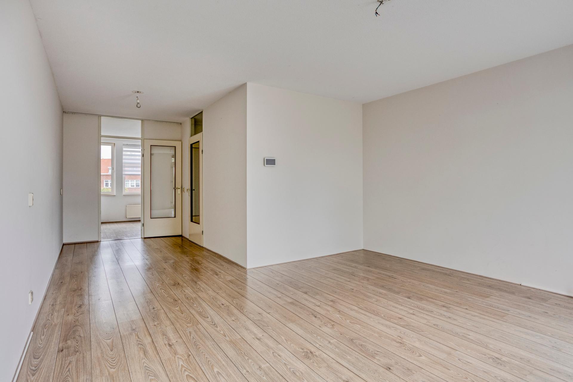 Lichte en ruime woonkamer van ca. 27 m2 met vrij uitzicht over de wijk. De dichte keuken van ca. 16 m2 heeft een modern keukenblok en is voorzien van een koelkast, vriezer, oven, 4-pits gasstel, afzuigkap en vaatwasser.