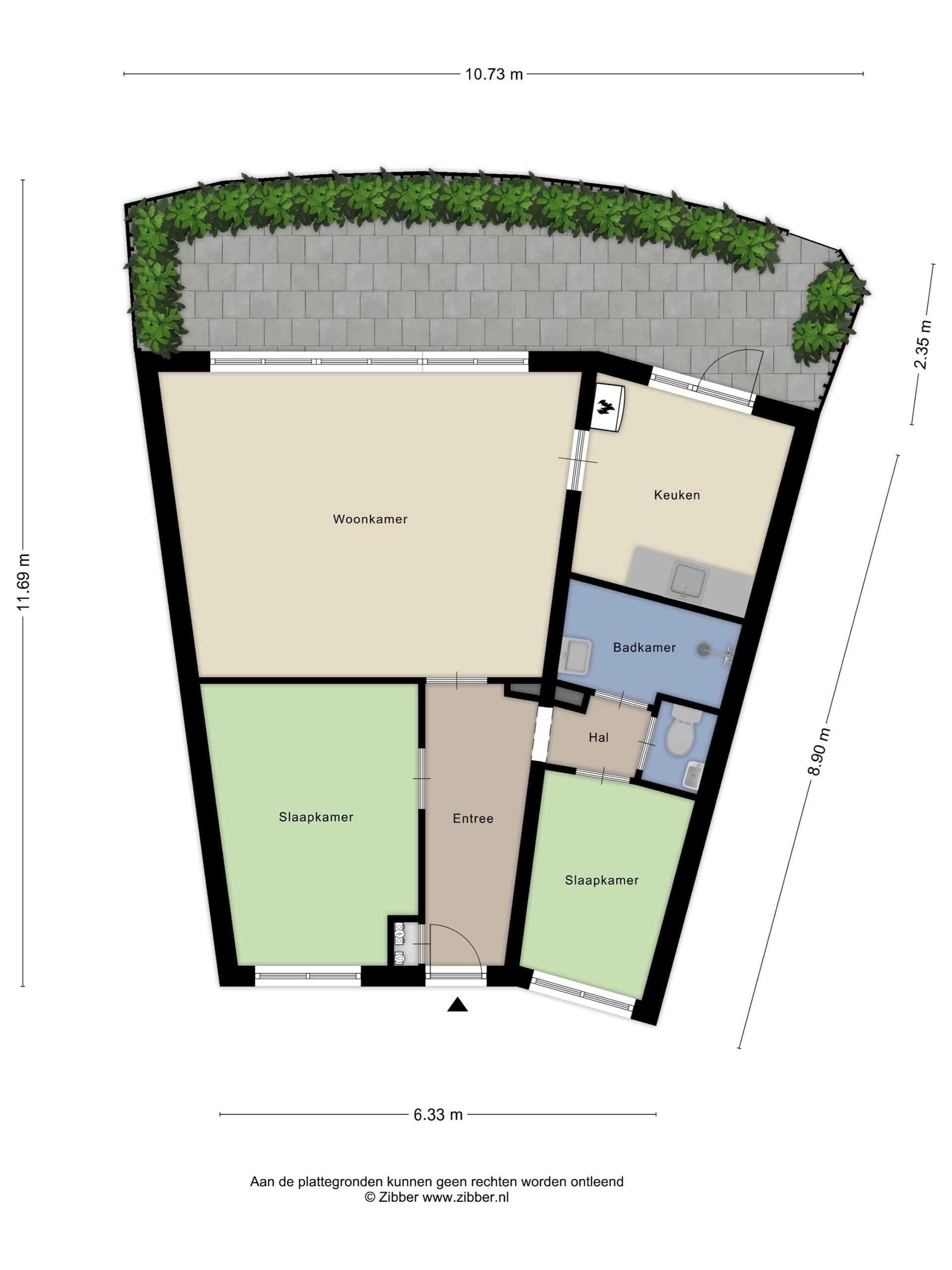 - Twee slaapkamers gelegen aan de voorzijde van het appartement van ca. 12m2 en 6m2