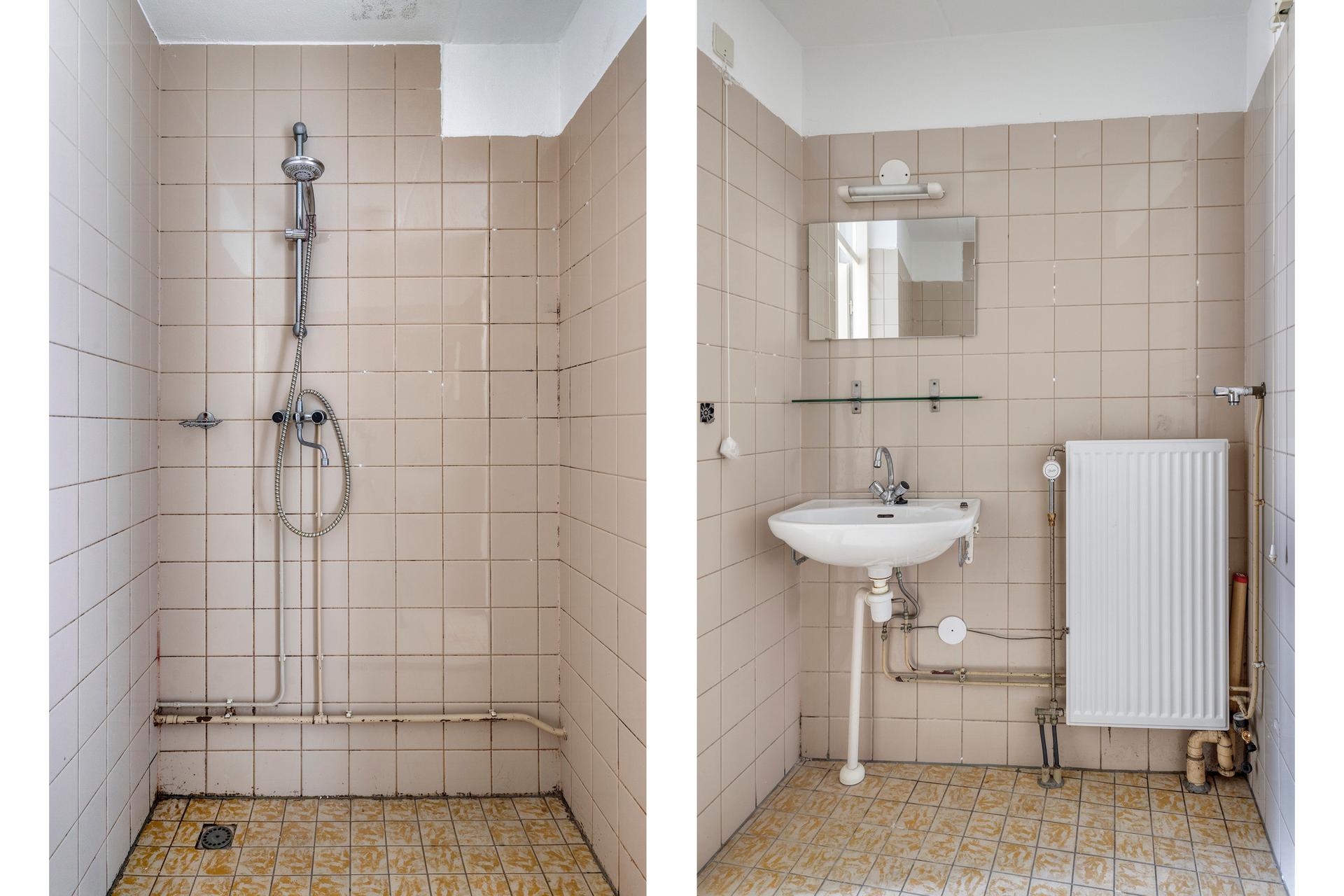 - Badkamer van ca. 4m2 met wastafel, douche en wasmachineaansluiting