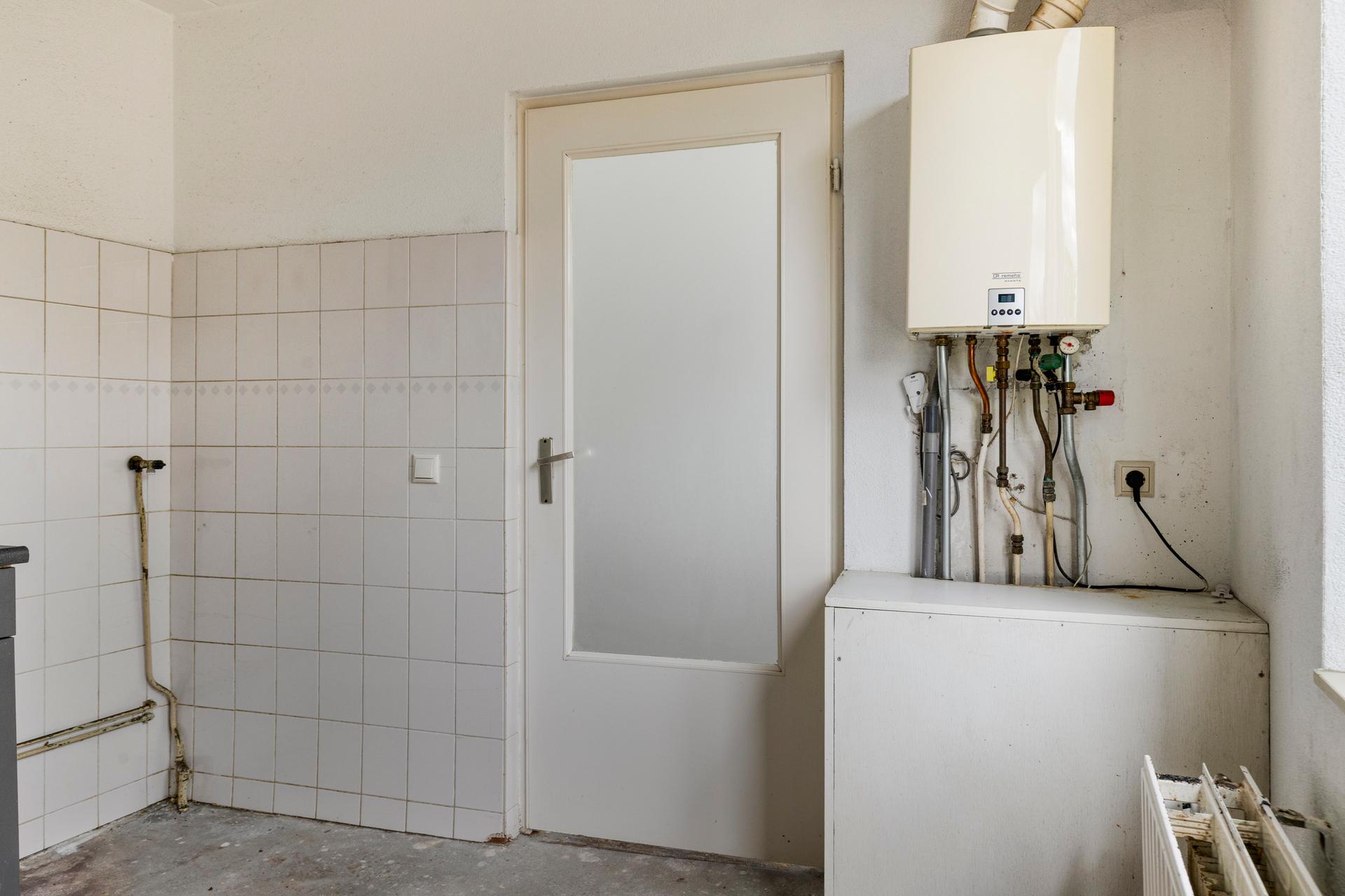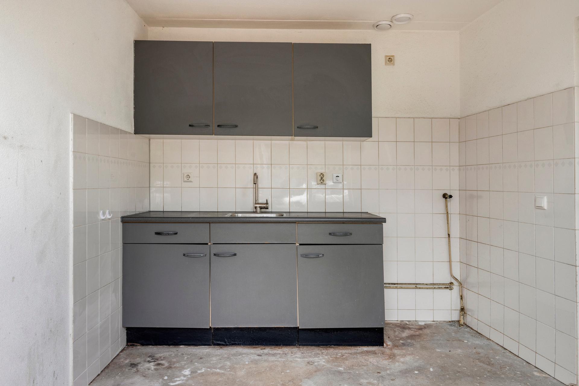 - Dichte keuken van ca. 8 m2 en toegang tot de achtertuin gelegen op het westen