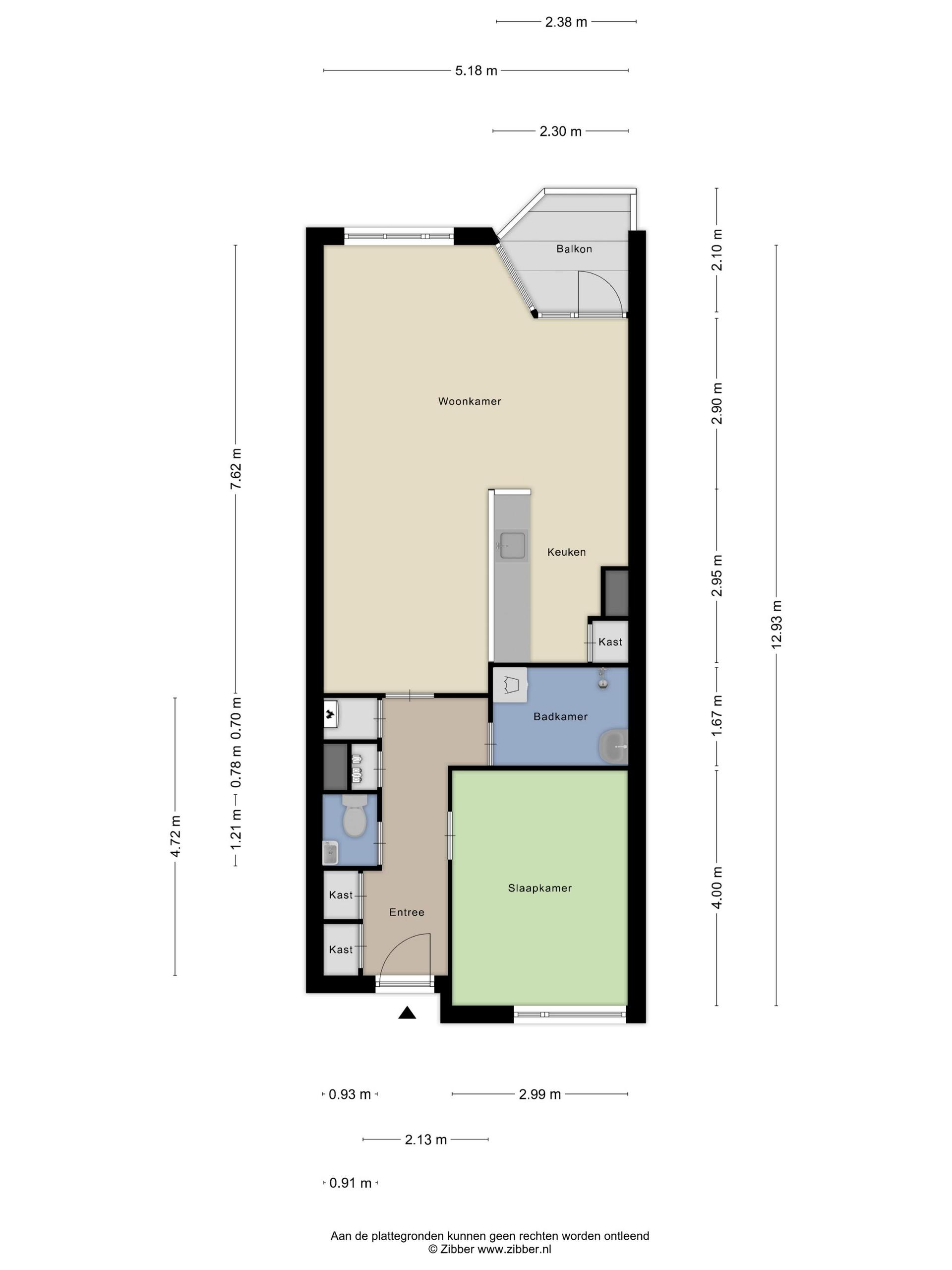 - Ruime woonkamer toegang tot balkon aan de voorzijde van de woning