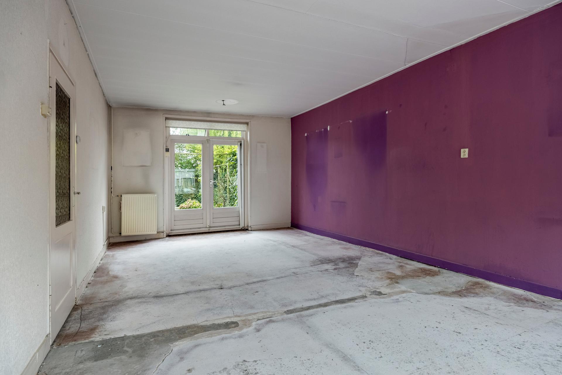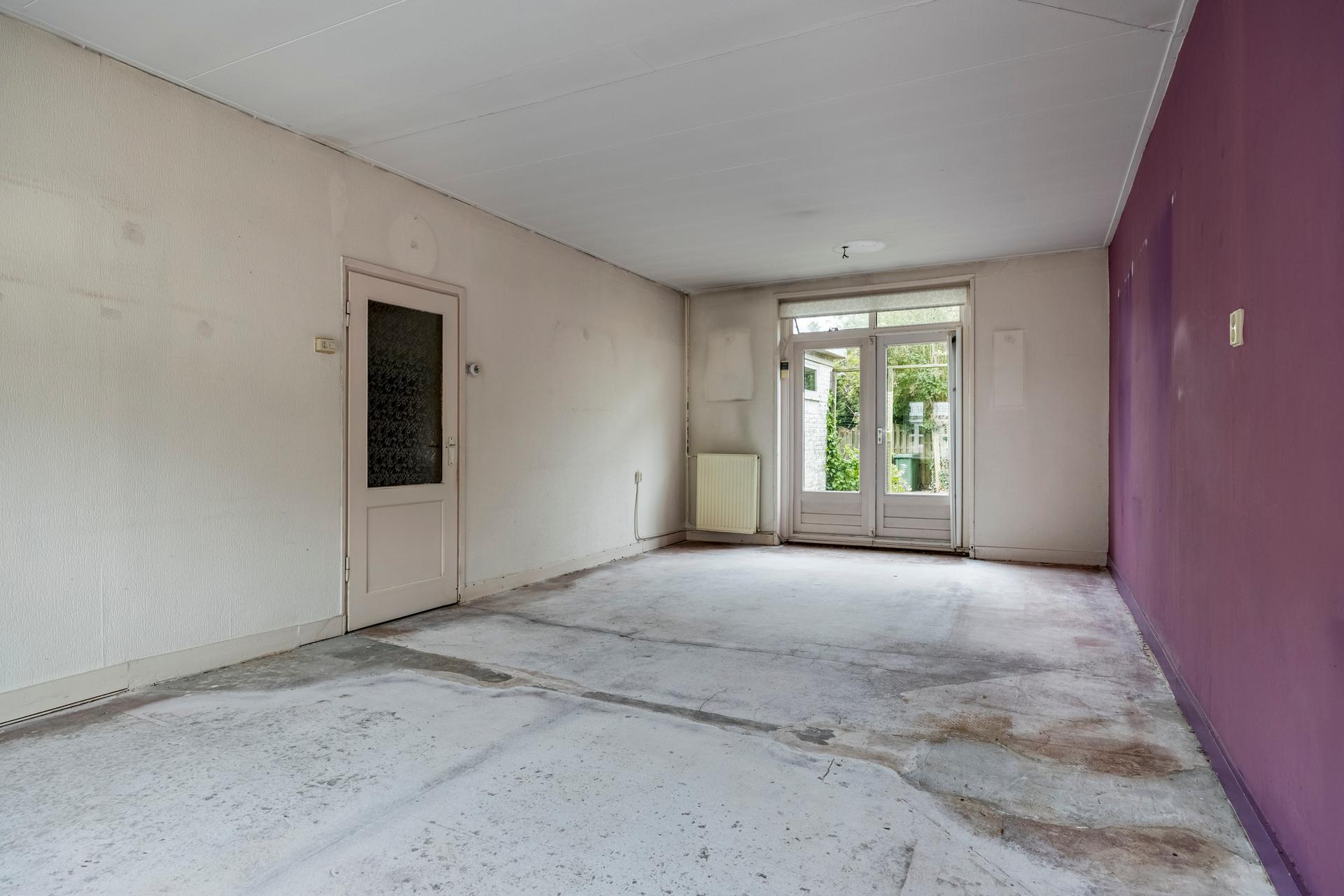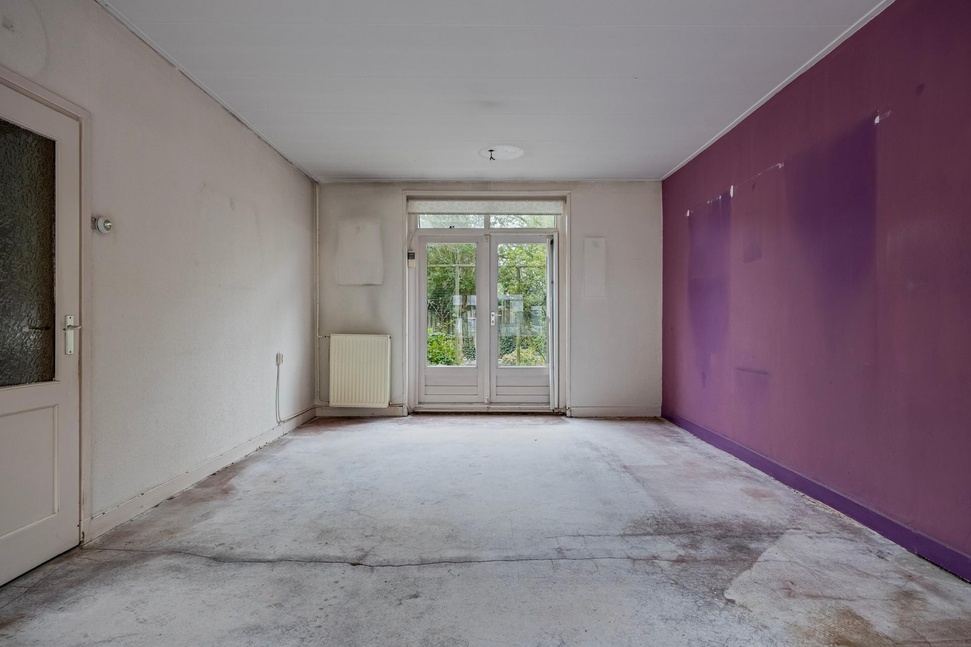 - Doorzon woonkamer, ca. 34m2, met openslaande deuren naar diepe achtertuin